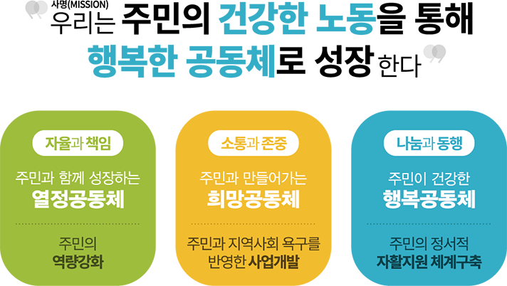 우리는 주민의 건강한 노동을 통해 행복한 공동체로 성장한다.